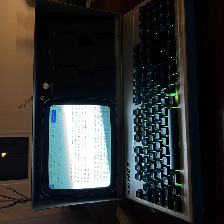 The Kaypro has long been one of my favorite of the early personal computers. Their strange form-factor, strong graphics and relative rarity made them into an object of desire for me.