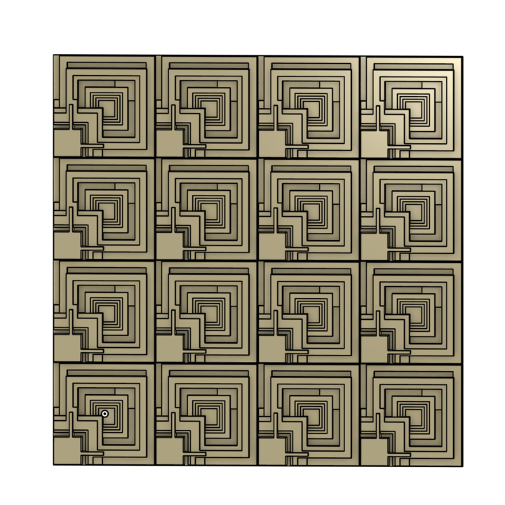 Getting the shape exactly right was a challenge, especially given the confusion between orientation of some elements in famous reproductions, like the Blade Runner style. There was another spooky moment when working on the layout of the blocks that resonated with me. It was hard to center the middle of the deepest square. I couldn’t find the exact xy dimensions of certain elements in the pattern and it led to all sorts of problems getting the final locations of sections correct. I looked at the design for so long and eventually realized that by changing the size of one section, it would have to proportionally change everything else just so that the final design was perfect after that one tweak. In that moment it felt like I was being told that I understood how the pieces of the design went together, and it freaked me out a bit.