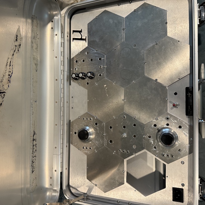 I drew inspiration from Buchla's small, wacky but powerful synth modules, then chose to take aesthetic influence from my test equipment collection, specifically my older Tektronix gear. This would pair nicely with the legend of the mythic nuclear football, the president's portable Halliburton briefcase containing the necessary controls to launch ICBMs.