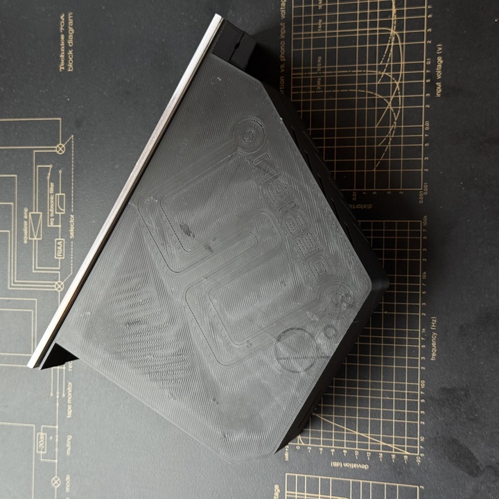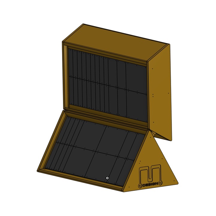 I was compelled to make an improvement upon the basic design of the Moog cabinets first, and decided it was possible to combine the shape of the cabinet profiles into a triangle shape that could hinge down as one unit while unfolding to a dual-stack setup common in uses of the original Moog Modular. Mixing measurements to get the right proportions for a comfortable interface while maintaining portability was tricky. So, I decided on a smaller than 5U format of module that I would create myself, with a width that could be derived from existing pieces of aluminum bar stock for easier fabrication. Each module would have a custom shape of 3D printed enclosure for protection, based around a contoured PCB shape derived from the shape of the triangle itself.