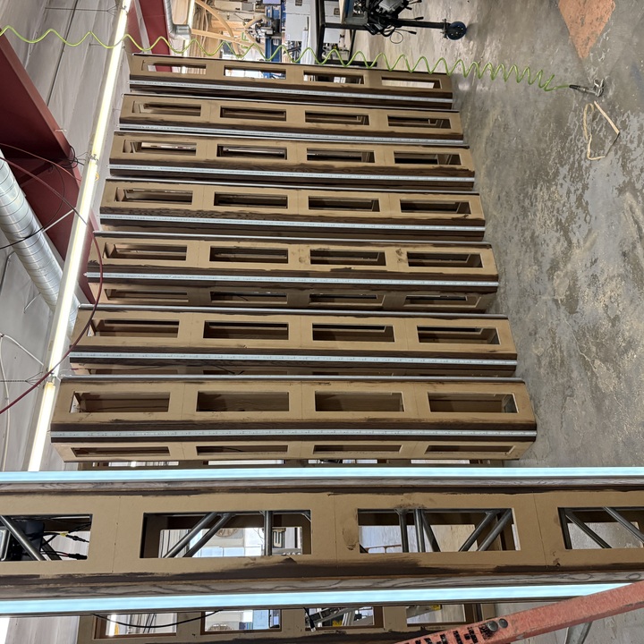 CNC operation: I routed 80 walls for EFX's stage wall system, this was production CNC work. I also routed aluminum on our router using a mister and slow feed rate for the RAMS game delivery bags to the right.